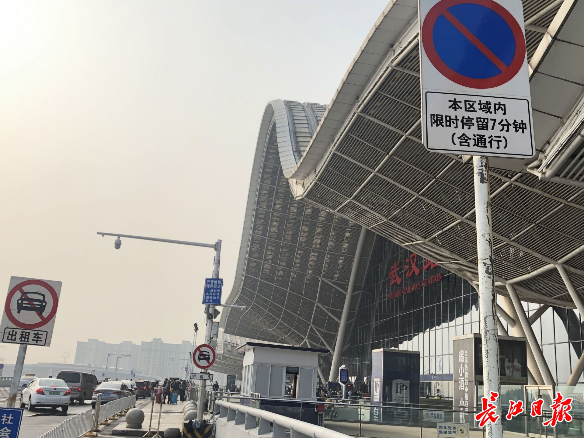 武汉站允许车辆临时停靠,限时7分钟。记者汪洋 摄