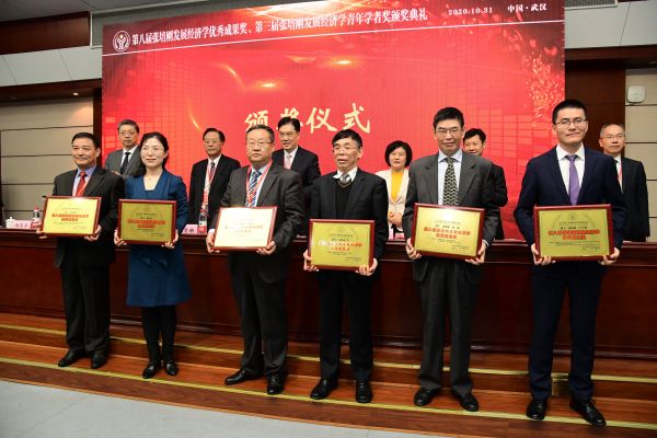 6篇论著荣获“张培刚发展经济学优秀成果奖”,获奖的三部著作分别是:洪银兴、任保平《新时代发展经济学》,宋洪远等《近代以来中国农村变迁史论》,徐佳君《国际发展领域超越美国霸权》;获奖的三篇论文分别是:郭熙保、周强《长期多维贫困、不平等与致贫因素》,罗必良《科斯定理:反思与拓展——兼论中国农地流转制度改革与选择》,张俊森、王学博《Beyond the Quantity-Quality tradeoff: Population control policy and human capital investment》。