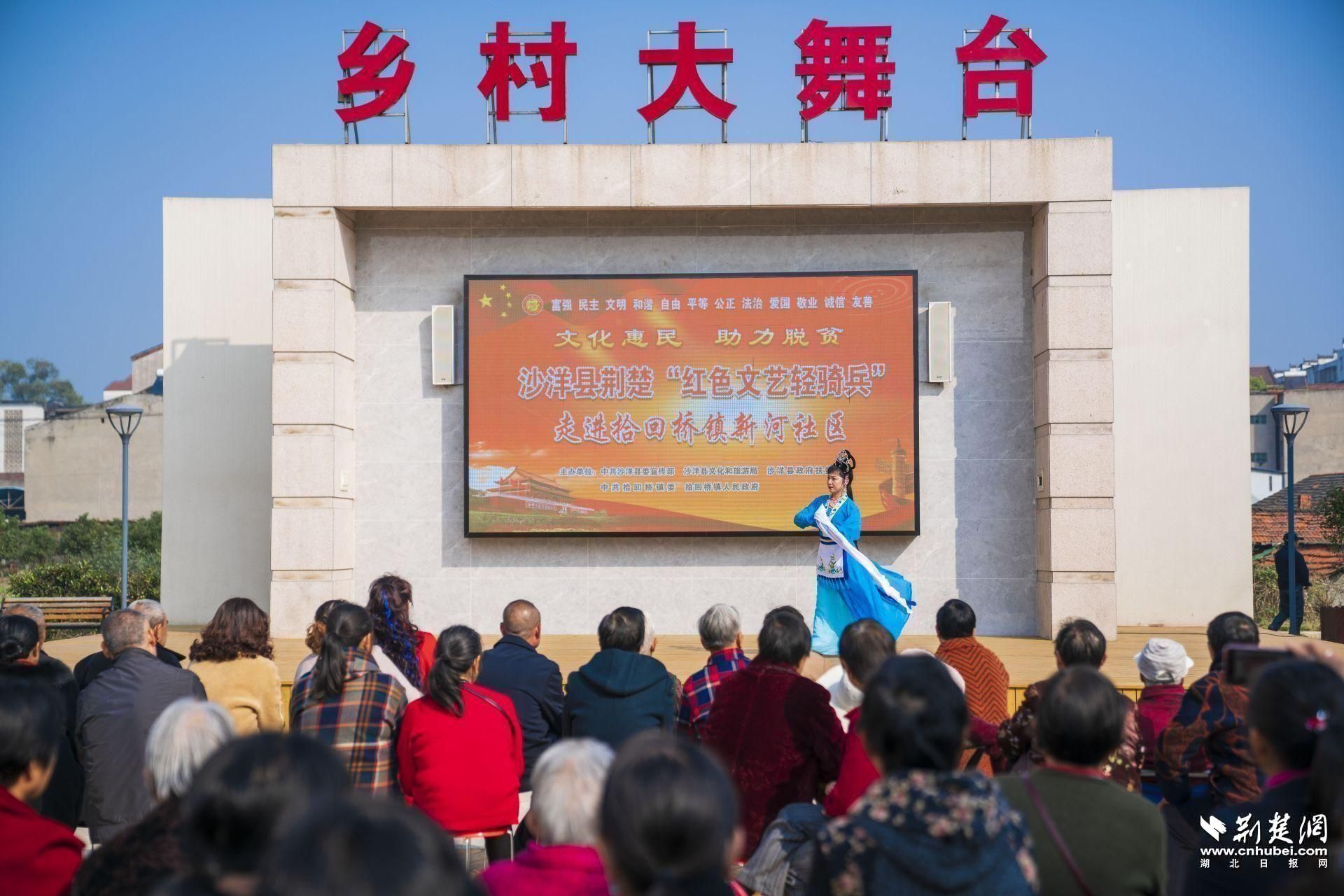图为:在沙洋县拾回桥镇乡村综合文化体,群众正在欣赏花鼓戏演出。记者 刘建维 摄