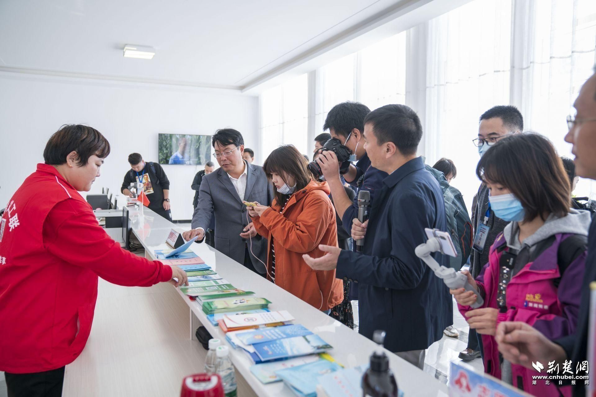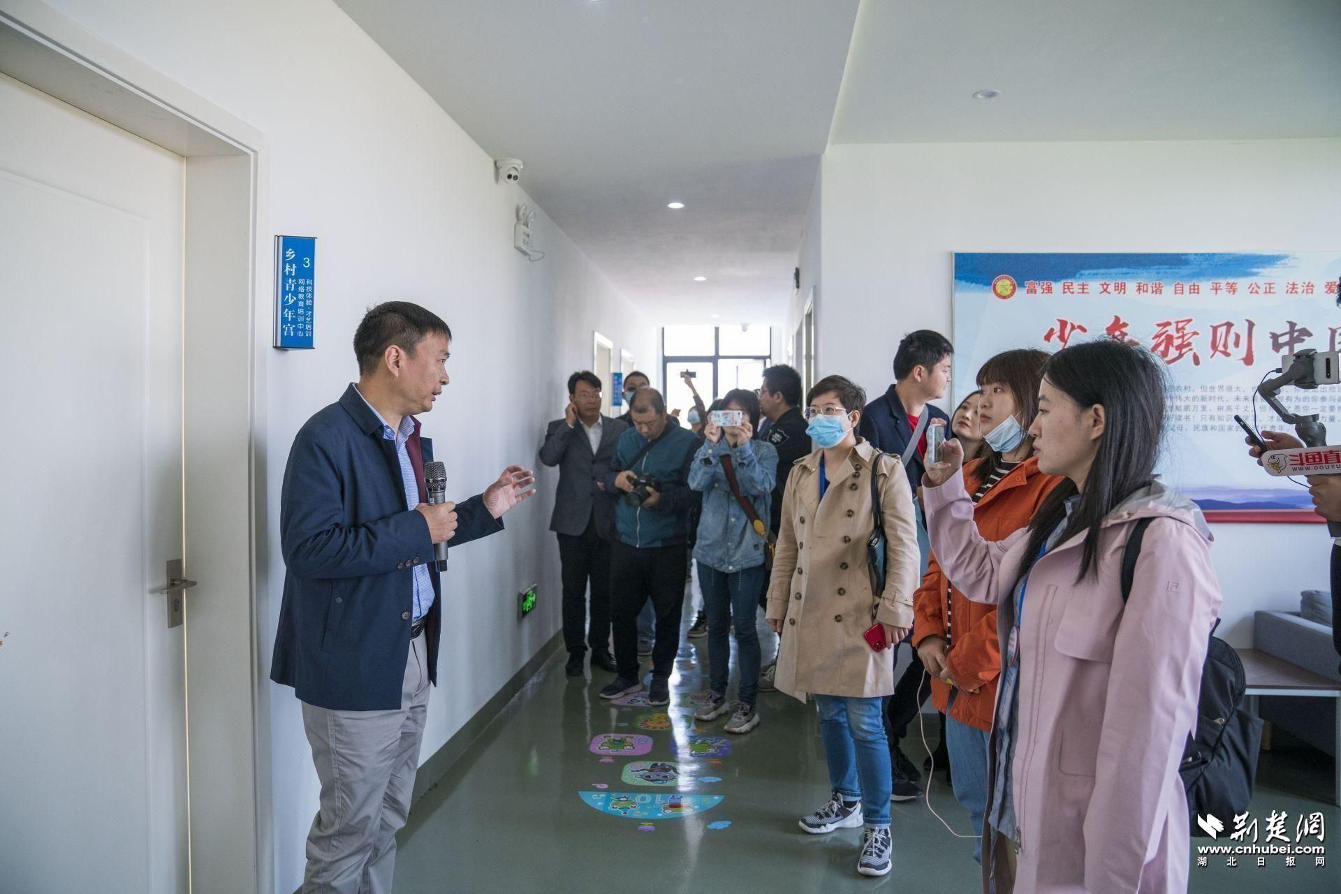 图为:沙洋县拾回桥镇党委书记张军向采访团介绍“双文”阵地的发展历程。记者 刘建维 摄