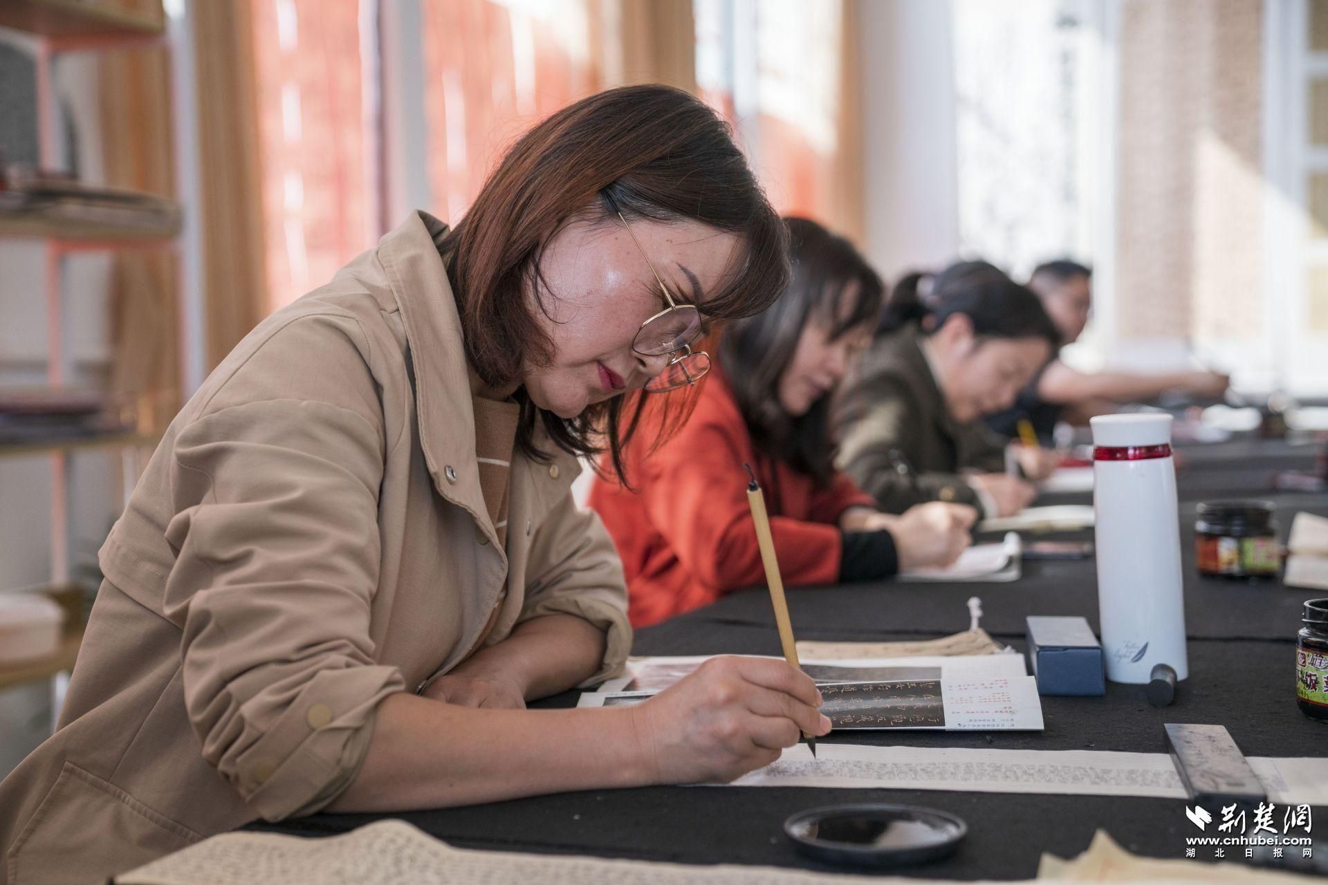 图为:村民正在乡村综合文化体书法培训班练习书法。记者 刘建维 摄