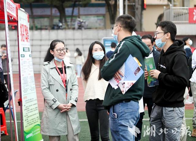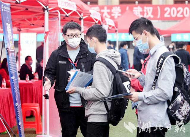 11月1日,由湖北省教育厅主办的湖北省2020年高校毕业生供需见面月大型招聘会在中国地质大学(武汉)举行。此次招聘会吸引全国223单位参会,提供了18000多个工作岗位。招聘现场,既有中国建筑、中国交建、中国中铁、华润置地、葛洲坝集团等企业,本次招聘涉及自然资源、信息技术、建筑、制造、教育等15个行业。招聘会是在疫情防控常态化的背景下进行,招聘现场人头攒动,虽然天空下着小雨,但是没有影响大学生求职的热情。 (湖北日报全媒记者 张鸿 通讯员 张玉贤 赵子昂 摄)