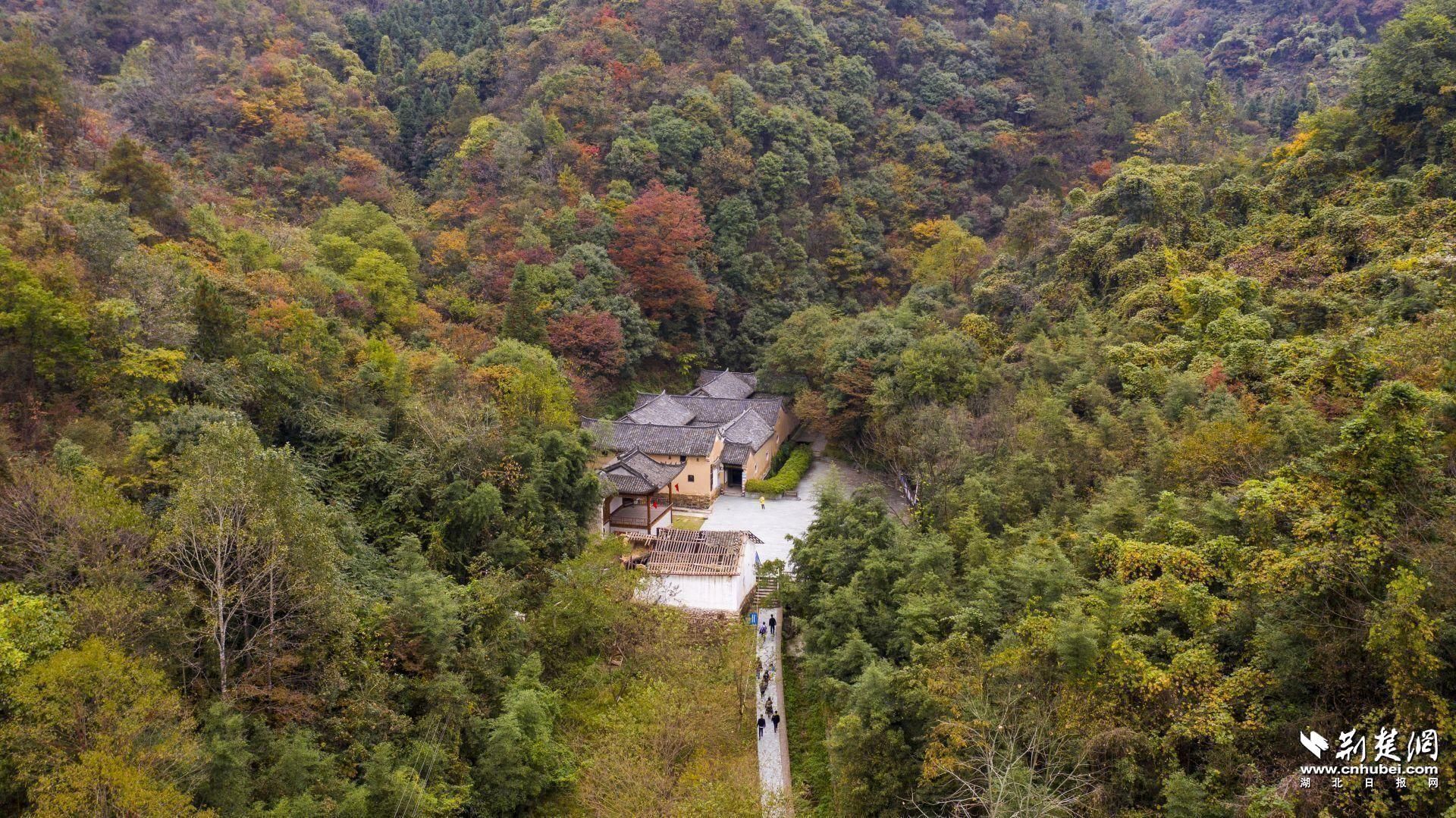 图为:群山掩映下中原突围鄂西北历史纪念馆。记者 刘建维 航拍
