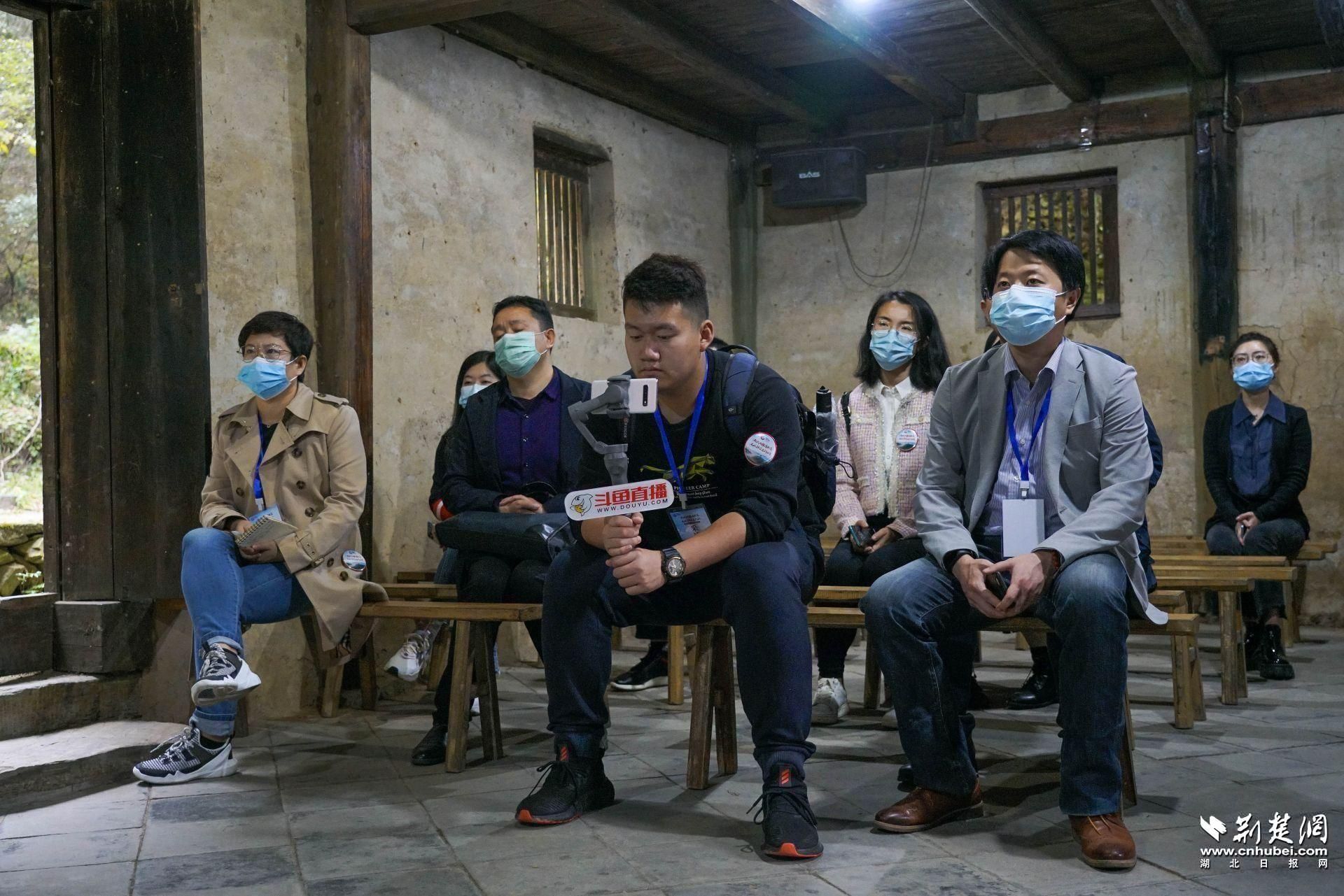 图为:采访团在观看东沟红色故事宣传片。记者 刘建维 摄影