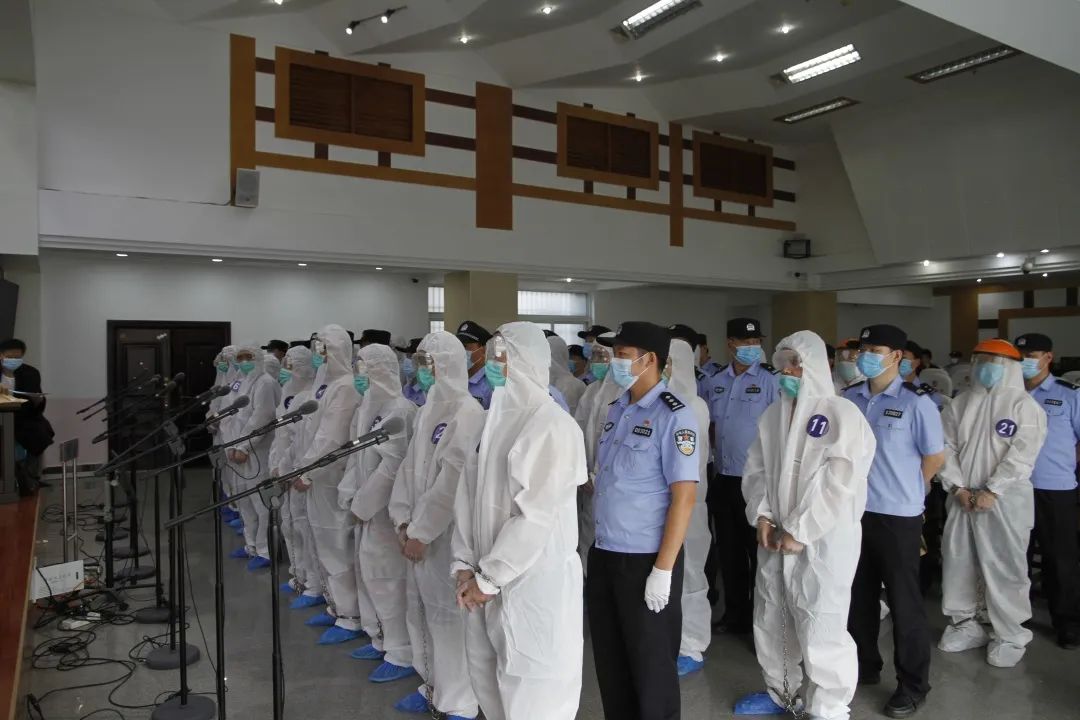 江汉油田公安局、市公安局交警及特警支队、市法院共同抽调130余名警力组成安保应急及提押换押专班,交警指挥交通,特警荷枪实弹,其他干警依法警戒,全力确保安全押送、秩序稳定。庭审参与人和押解人员均进行了核酸检测,被告人身着防护服、戴口罩或防护面罩,市疾控中心专家指导相关人员对审判庭等场所进行了消杀,市卫健委、市中心医院组建2支专业医疗队现场提供医疗保障。因涉案被告人人数较多,且社会影响大,该案将在合议庭评议后择期宣判。
