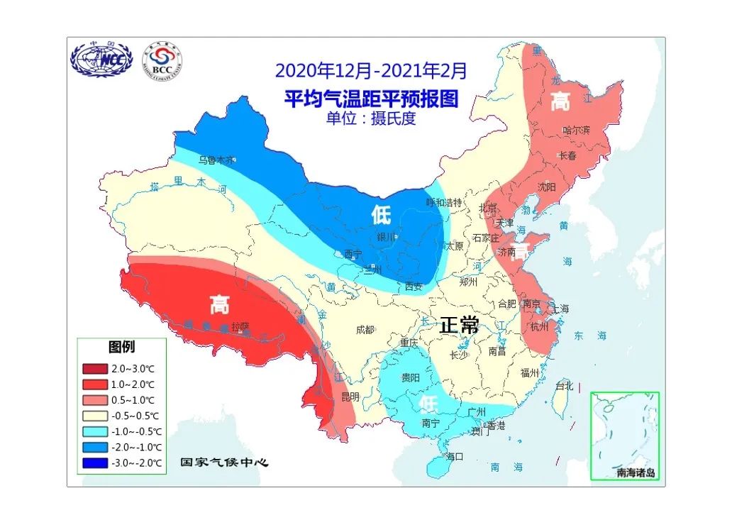在冬季前期(2020年12月),除内蒙古西部、西北地区东北部及华南部分地区气温偏低外,全国大部气温接近常年或略偏高;