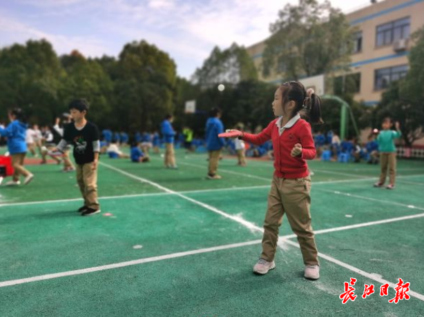 长江网11月5日讯颠乒乓球、跳长短绳、仰卧起坐……11月5日,武汉经济技术开发区三角湖小学博学校区举办“健康2020”体育节,比赛中增加了一些疫情防控期间延续下来的居家锻炼项目。