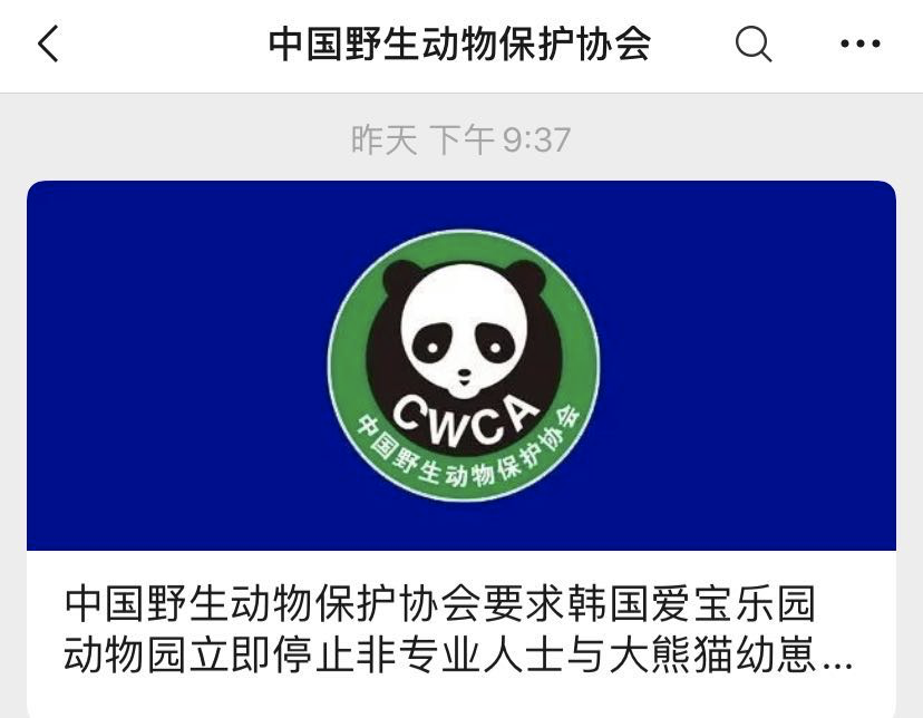 11月5日晚,中国野生动物保护协会表示,就韩国爱宝乐园动物园违反大熊猫保护专业要求,组织演艺相关人员亲密接触大熊猫幼崽并制作娱乐节目一事,已正式去函该动物园,要求其立即停止此类行为,停止播放、传播相关内容的视频。要进一步加强管理,科学管护,坚决杜绝此类事件再次发生。