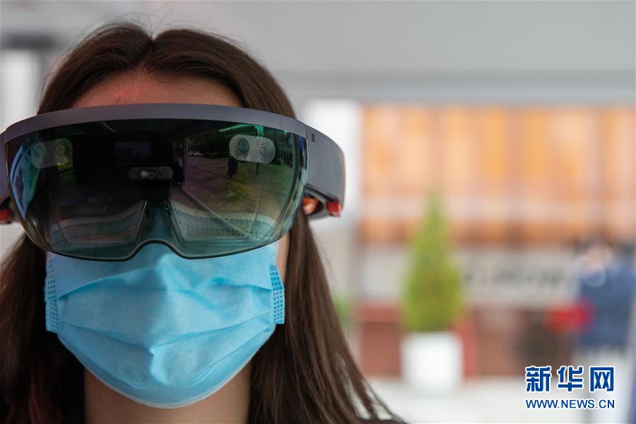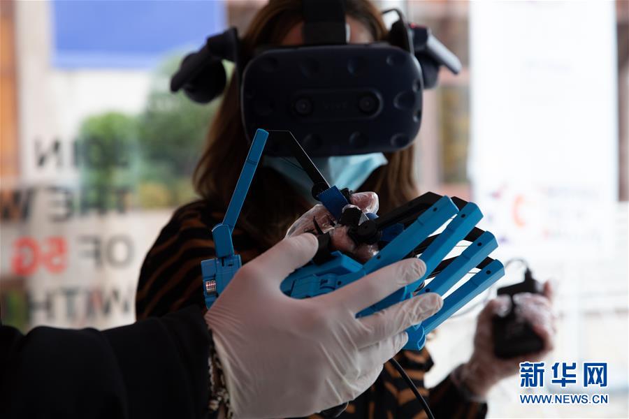 11月5日,一名参观者在西班牙马德里的华为路演活动中体验华为5G AR眼镜。 中国企业华为5日在西班牙首都马德里进行了一场5G路演,让观众以实际操作的方式感受5G技术如何改变生产和生活。 新华社记者 孟鼎博 摄