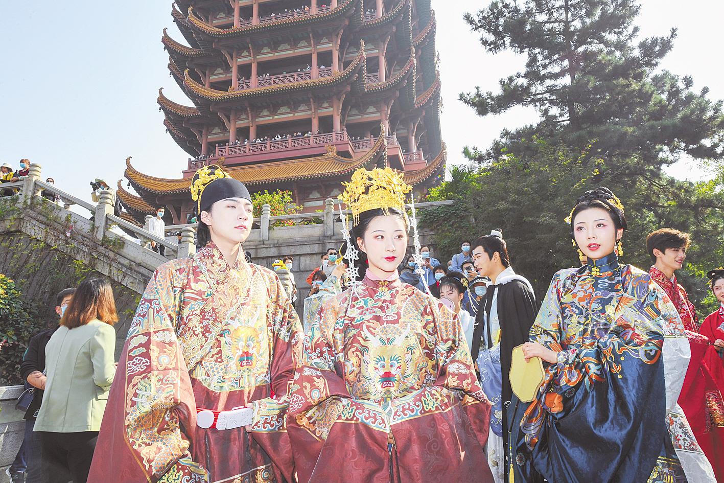 湖北日报讯 (记者陈勇,通讯员秦工、罗芬)华服秀典晚会、华服快闪、名家论坛、中华文化典故画展、“华裳秋韵”摄影大赛……11月7日,首届“世界华服大会”在武汉黄鹤楼公园和楚天181文化产业园举行,以华服为载体,展示中华文明人文底蕴,推进武汉成为全球华服文化活动重要基地。该活动由湖北省华服文化研究会、湖北省人民对外友好协会、武汉市归国华侨联合会等单位发起。