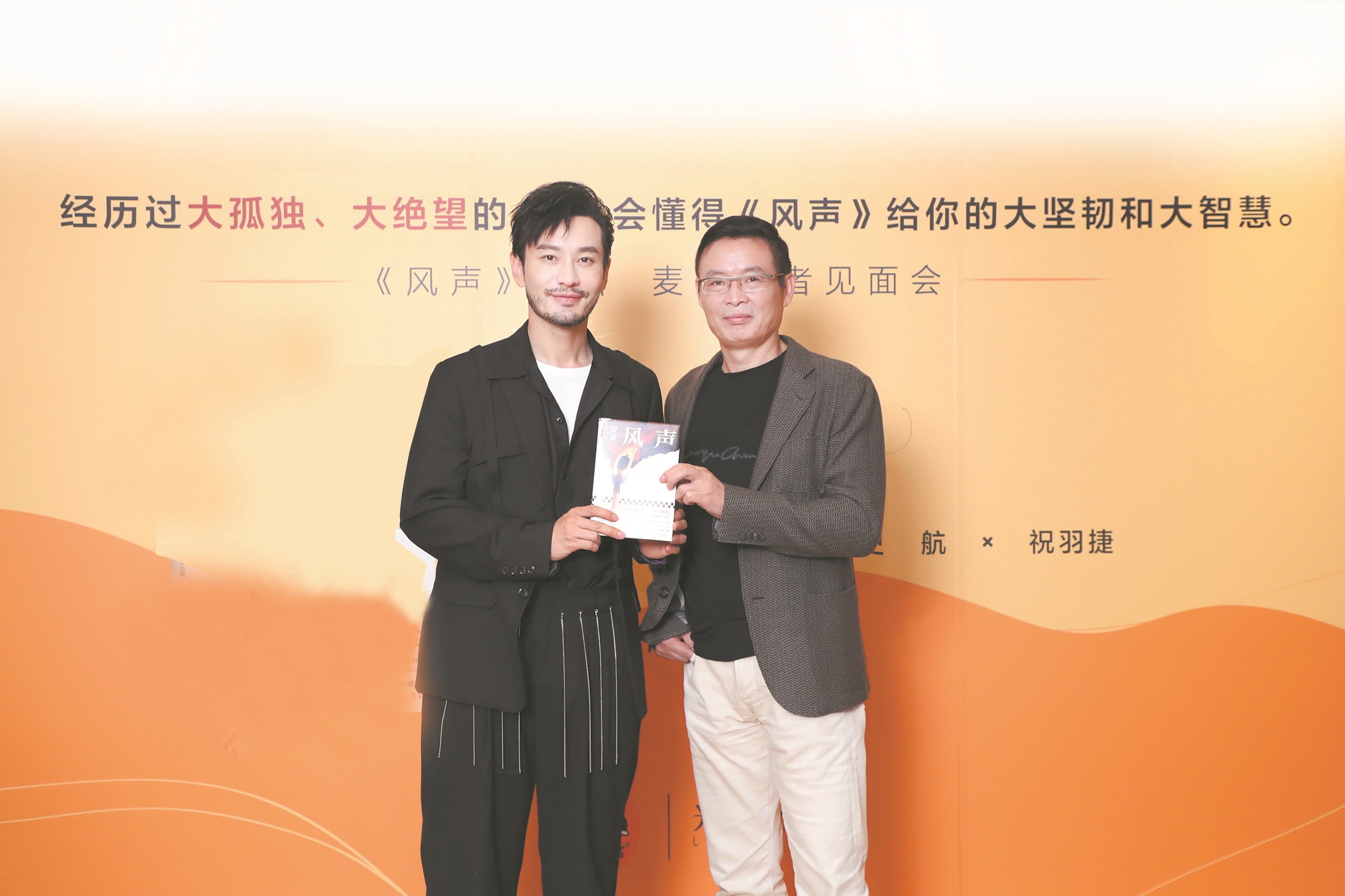 为了支持自己的好友兼作家偶像,正在武汉拍戏的黄晓明特意赶到上海,并在活动现场深情讲述了他和《风声》的不解之缘以及《风声》对他的重要意义,两位好友还预定了未来合作,网友直呼“仿佛是在看明星现场追星”。