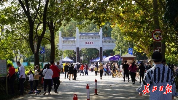 8日,东湖落雁景区游人如织。 记者宁秀梅 摄