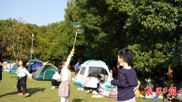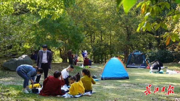 据统计,磨山景区当日接待游客量高达7.1万人次,其中青年游客占六成,草坪野餐、玩游乐设施成为磨山最热秋游方式。