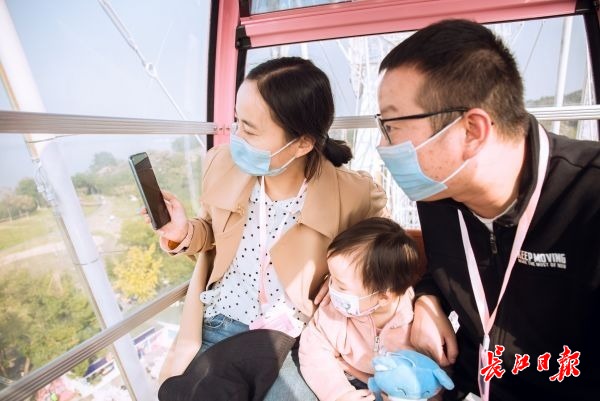 一家三口同乘“东湖之眼”,享受甜蜜的家庭时光。 记者李文婕 摄