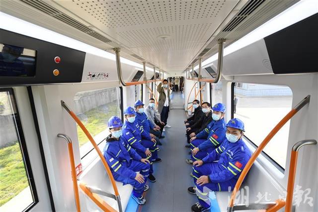 当天上午,“新时代号”空中轨道列车驾驶舱内空无一人,联络员向运营调度中心发出信号后,列车缓缓驶出车间。湖北日报全媒记者坐在车厢内,安静平稳,窗外阳光明媚,风光一览无余。