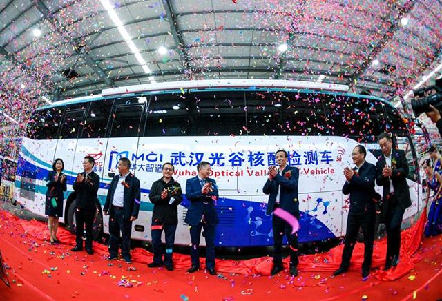 楚天都市报11月9日讯(记者 陆缘 摄影 邹斌 通讯员 刘倩 周密 视频剪辑轩逸瑶 )今日,湖北省首台5G+智能移动式核酸检测车下线,武汉市江夏区采购了首台将用于疫情常态化防控。该车符合P2(二级生物安全)实验室标准。由武汉客车制造股份有限公司联合武汉华大智造科技有限公司共同研发。