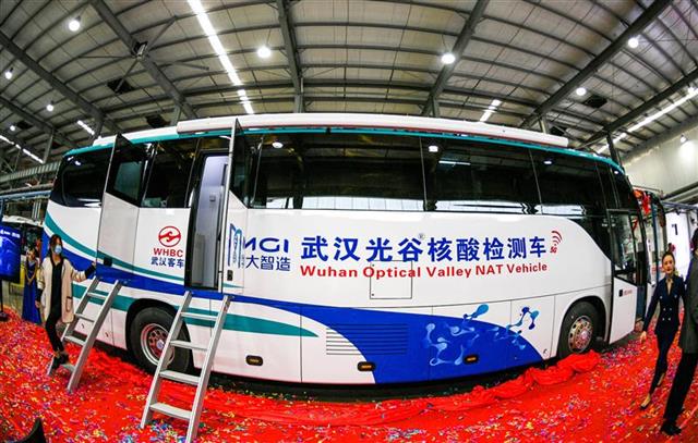 武汉光谷®核酸检测车采用大型豪华客车平台,配备负压过滤系统及紫外消毒系统,并整合华大智造的自动化设备及实验室智能管理系统,符合P2(二级生物安全)实验室标准。具备从样本采集,自动化样本前处理,自动化核酸提取,核酸检测,到最后出报告全流程功能,全程信息化管理,自动化程度高。
