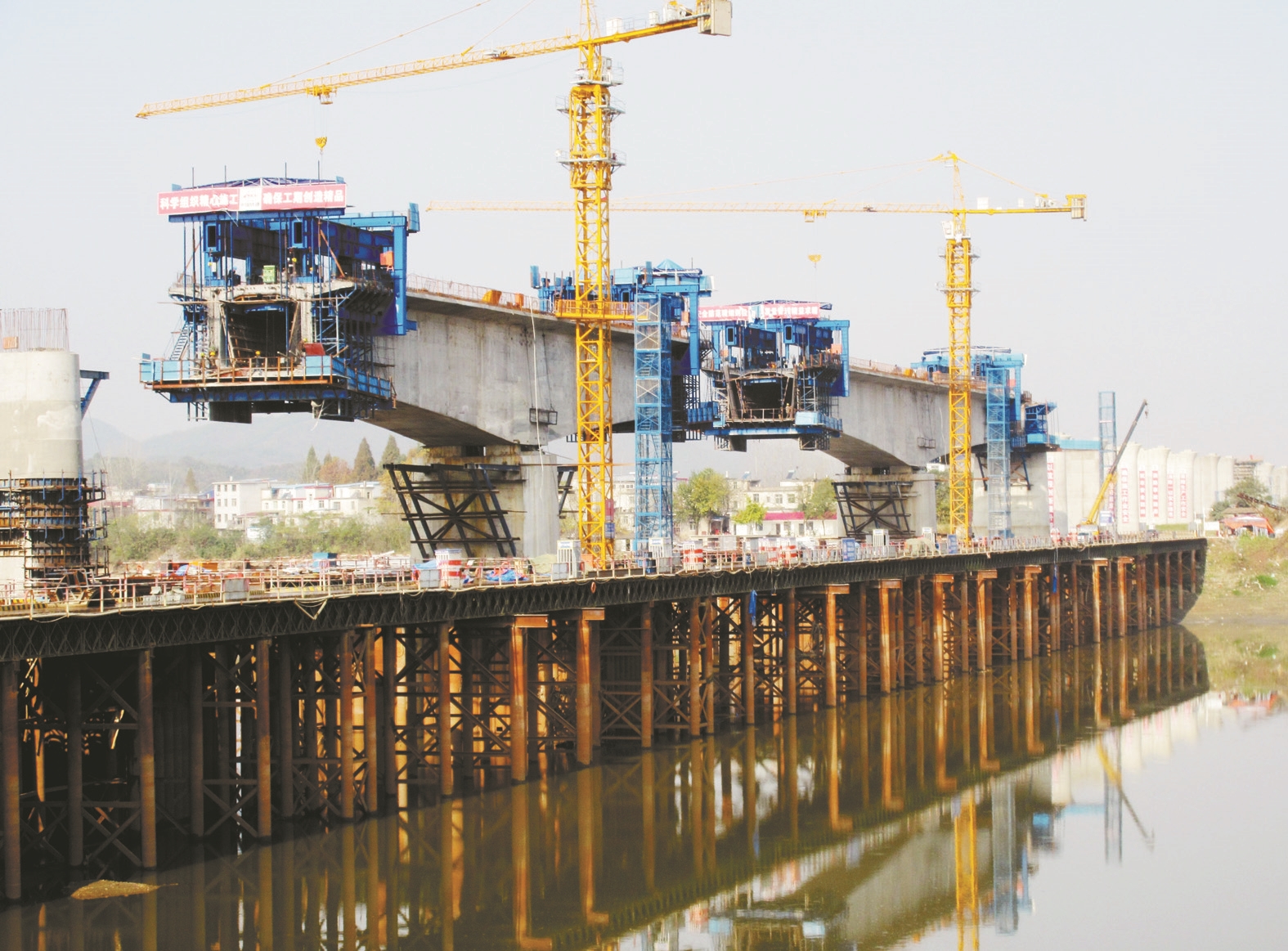 黄黄高铁浠水段全长32.56公里,总投资45亿元,途经巴河、竹瓦、清泉、经济开发区、丁司垱五个镇区21个行政村。目前,整个黄黄高铁浠水段沿线工程项目建设都在加快推进。图为全长5275米黄黄高铁浠水河特大桥上部结构加紧有序施工,预计今年12月份整个黄黄高铁浠水段可以全面进入箱梁铺设阶段。