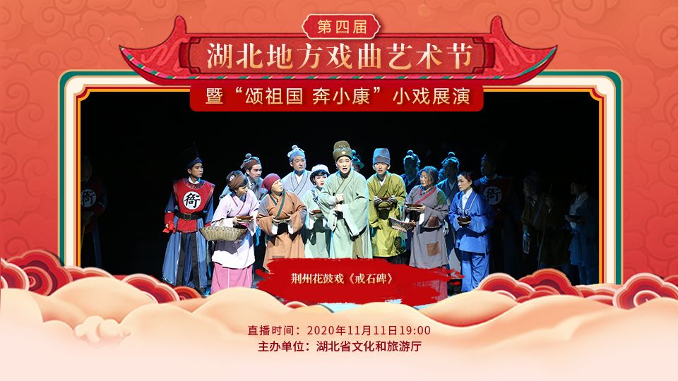 第四届湖北地方戏曲艺术节暨“颂祖国、奔小康”戏曲展演,51场好戏看不停!11月11日19:30,荆门市艺术剧院带来的荆州花鼓戏《戒石碑》在荆门市群艺馆线下展演,线上同步播出。