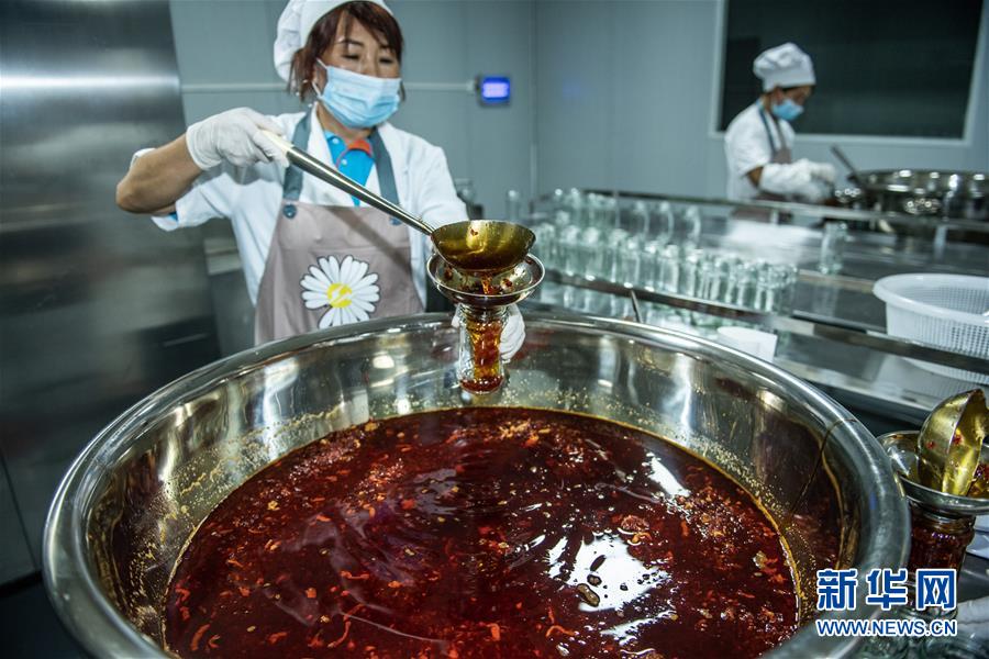 麻怀村村民在灌装辣椒酱(9月1日摄)。 地处麻山腹地的贵州省罗甸县沫阳镇麻怀村,是一个被群山包围的山地村,也曾是饱受交通不便之苦的极度贫困村。从1999年开始,被称为当代“女愚公”的邓迎香,带领乡亲们经过十余年的艰苦努力,开凿出一条216米长的隧道,将与世阻隔的麻怀村与山外世界连通在一起。如今的麻怀村发展种植养殖、旅游业,产业欣欣向荣。这条连接大山之外的隧道,已成为当地通往幸福的隧道。 新华社记者 陶亮 摄