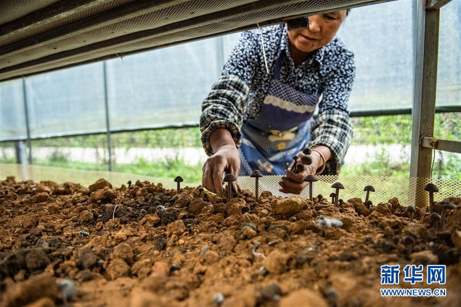 麻怀村村民在采摘黑皮鸡枞菌(5月25日摄)。 地处麻山腹地的贵州省罗甸县沫阳镇麻怀村,是一个被群山包围的山地村,也曾是饱受交通不便之苦的极度贫困村。从1999年开始,被称为当代“女愚公”的邓迎香,带领乡亲们经过十余年的艰苦努力,开凿出一条216米长的隧道,将与世阻隔的麻怀村与山外世界连通在一起。如今的麻怀村发展种植养殖、旅游业,产业欣欣向荣。这条连接大山之外的隧道,已成为当地通往幸福的隧道。 新华社记者 陶亮 摄