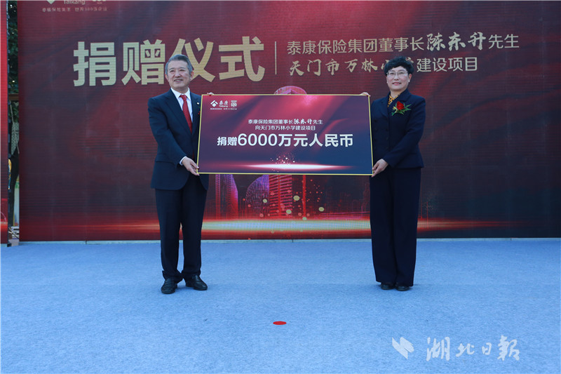 湖北日报讯(记者廖志慧)11月14日,泰康保险集团董事长兼CEO陈东升在天门捐资6000万元建设的万林小学正式奠基,当天,泰康保险集团还捐资4000万元助力天门泰康大桥建设。