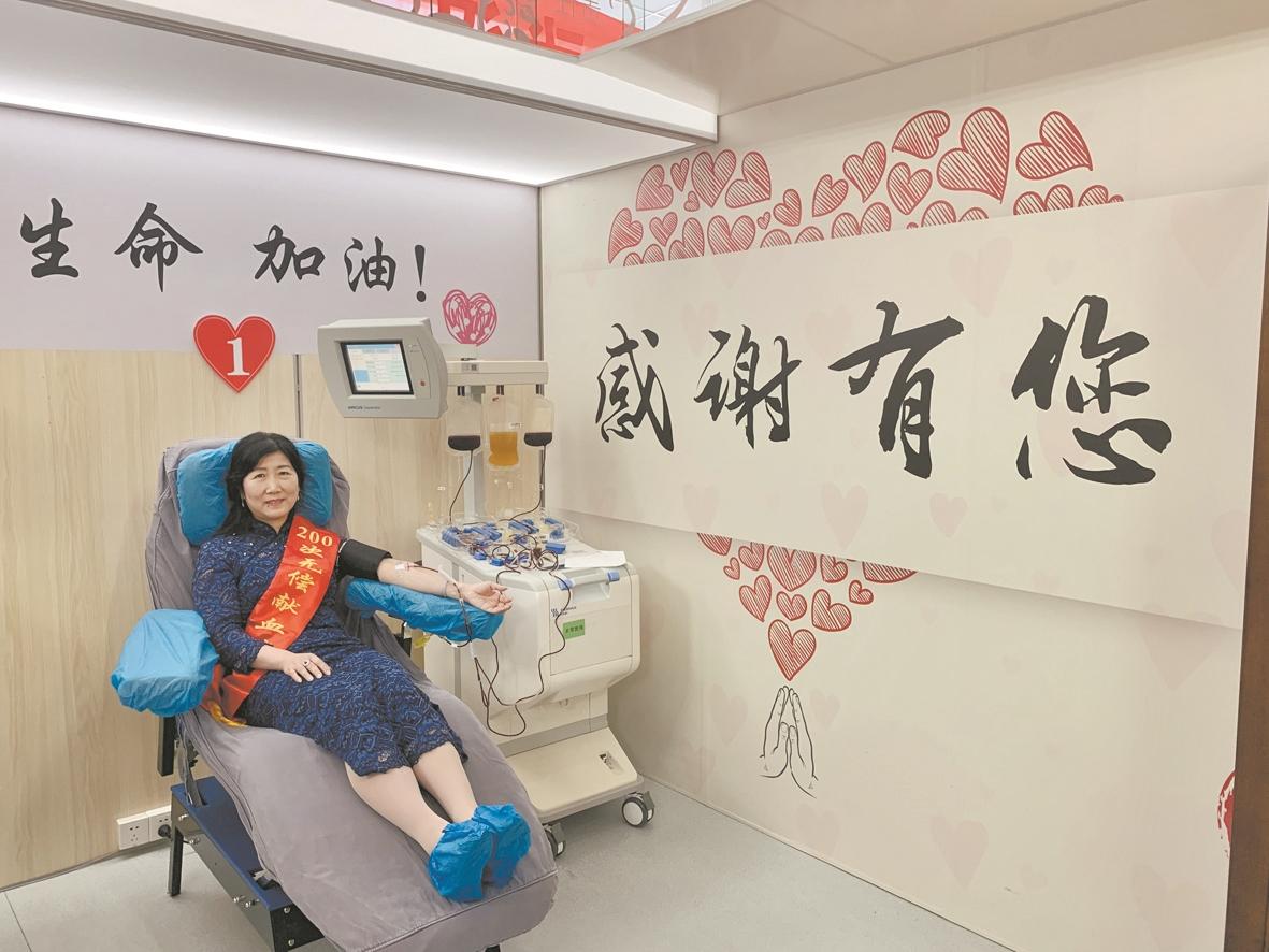 昨日上午,潘迎春像往常一样,走进了熟悉的武汉血液中心。可是这次又格外不同,因为她成为了武汉第37位献血次数超过200次的无偿献血者。