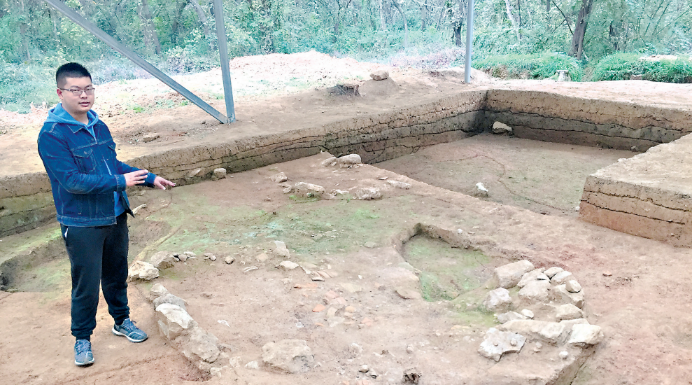 盘龙城遗址博物院考古研究部副主任廖航向记者介绍闭环状石堆。长江日报记者万建辉 摄