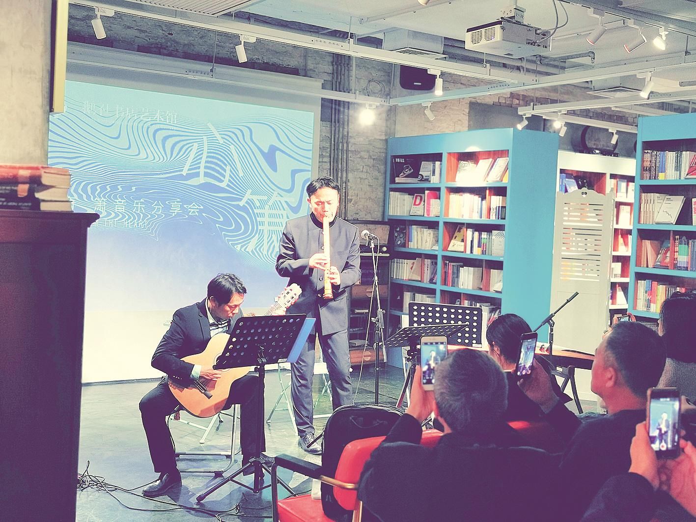 琴声婉转,箫韵悠长。在书香四溢的书店里,一群观众静静地安坐室内,或闭目,或侧耳,聆听着演奏家美妙的现场演奏。这是11月13日晚,发生在汉口青岛路的鹅社书店艺术馆内的一幕。当晚,该书店举办的“书店里的音乐会——著名笛箫演奏家周可奇洞箫专场音乐会”,吸引了不少爱乐者前来观摩欣赏。