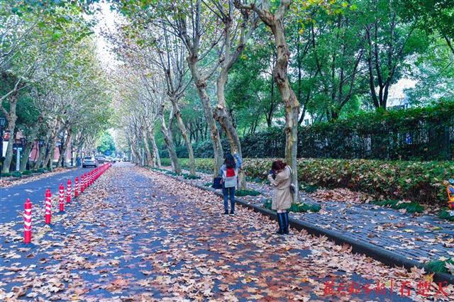 当然,在许多街景处、公园,各色落叶让市民感受深秋落叶之美。