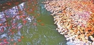 上午8点多,记者在解放公园看到,落虹桥附近的人工湖畔,数株高大法桐树的落叶,铺满湖畔的草地,水面上也飘满落叶,树上、地上、水上,层次分明的落叶,构成了一幅色彩斑斓的油画。湿地科普馆旁的锦鲤池一角,法桐黄叶铺满半边水面,而另半边水面上,都是如花朵般艳丽的锦鲤。黄叶和锦鲤,构成了一幅绝美的鱼戏红叶图。