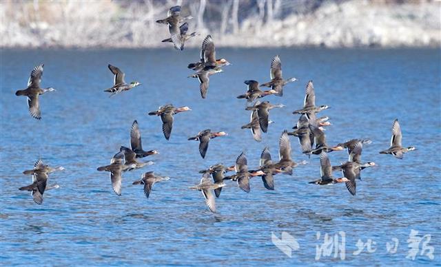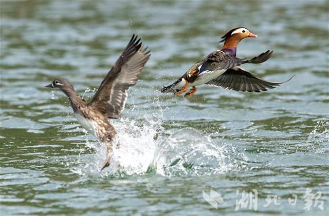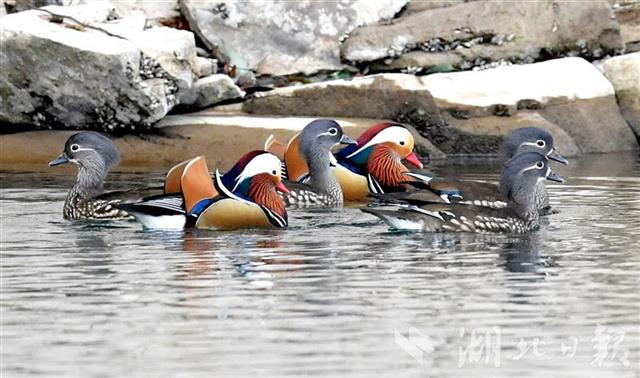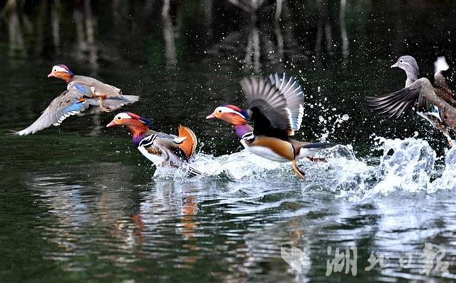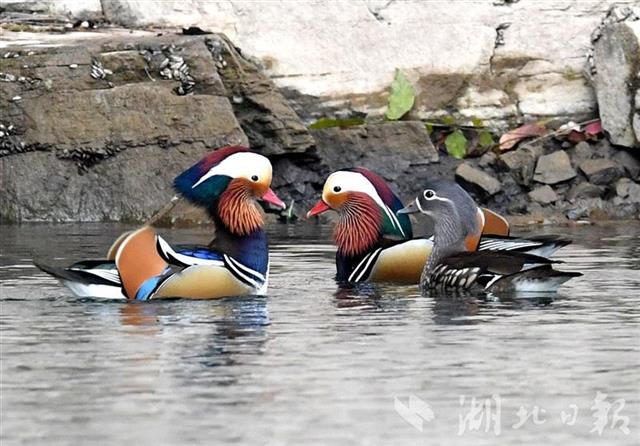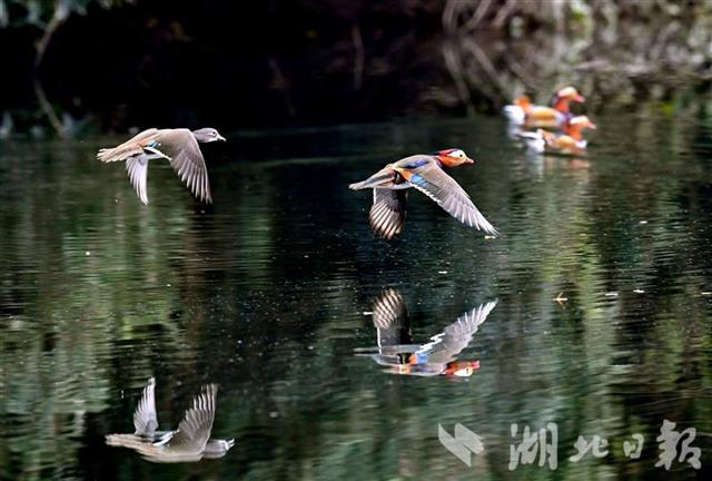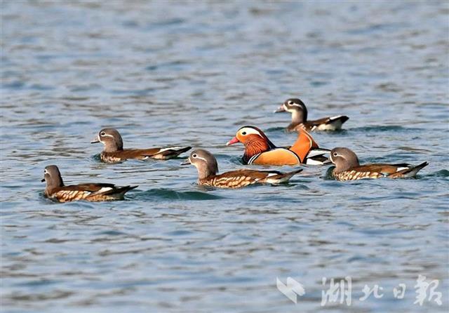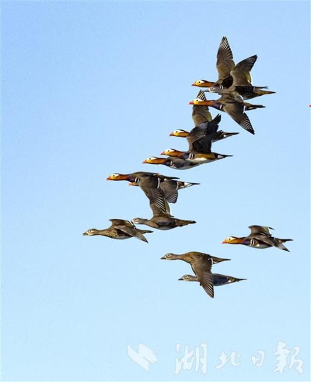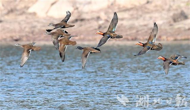 湖北日报讯(通讯员董玉清)11月以来,一群群美丽的鸳鸯从北方迁徙到荆门漳河水库,在这里安家落户、栖息越冬。当地鸟类专家近半个月来观测,飞抵漳河的鸳鸯已有1000多只,其数量已超过往年。目前,漳河流域成为鸳鸯重要的栖息越冬地。