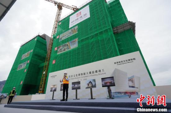 11月18日,香港故宫文化博物馆大楼结构竣工仪式在大楼工地举行。香港故宫文化博物馆是香港西九龙文化区管理局与北京故宫博物院的合作项目,由香港赛马会慈善信托基金捐资35亿港元兴建,2018年5月28日奠基动工,计划于2022年年中对外开放。图为正在施工中的香港故宫文化博物馆大楼(航拍)。