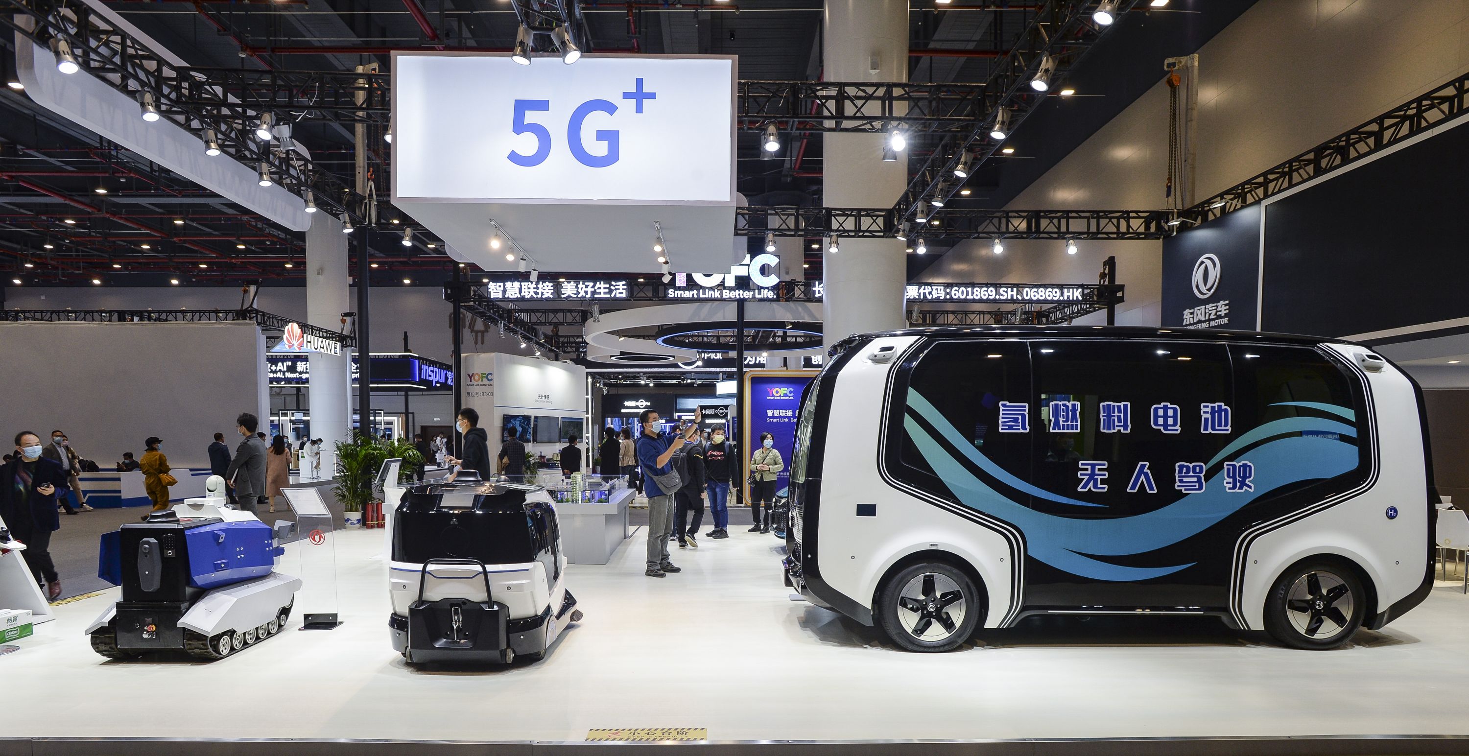 长江网11月19日讯(记者李金友)11月19日,2020中国5G+工业互联网大会举行,“5G+工业互联网成果展示”展厅对外开放。5G赋能智慧出行,东风汽车集团有限公司自动驾驶汽车Sharing-Van(氢燃料电池版)亮相“5G+工业互联网大会”,引来围观。