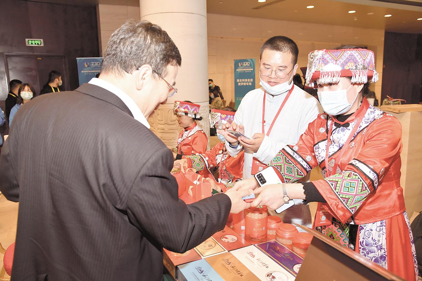恩施玉露、枝江大曲、蕲春艾草……活动现场,以“楚茶”“楚酒”“楚药”“楚味”“楚韵”为代表的系列荆楚优品依次布展。海内外代表品味美酒美食、欣赏茶艺表演、感受楚风楚韵,与湖北企业热聊不断。