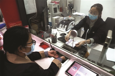市民在银行柜台兑换新版5元纸币
