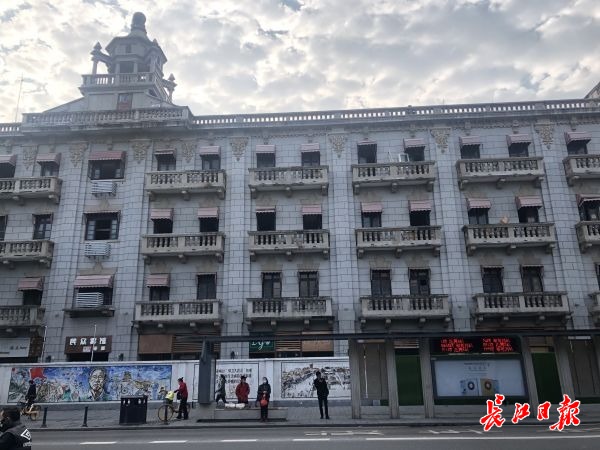 20日上午,长江网记者来到中山大道,找到了孙先生所说的这栋建筑。这是一栋西式风格的建筑,共4层高,顶部还有一个塔楼。