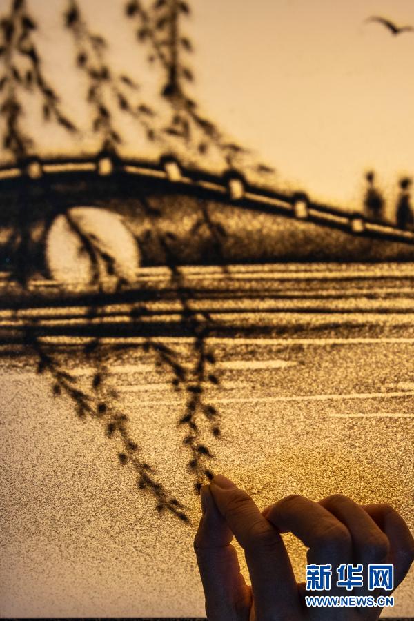 “90后”女孩朱霞是山西省太原市晋源区的一名沙画师。自幼喜欢绘画的她,大学期间接触到沙画后就被深深吸引。2014年,朱霞成立了沙画工作室,专门从事沙画艺术的教学和推广。