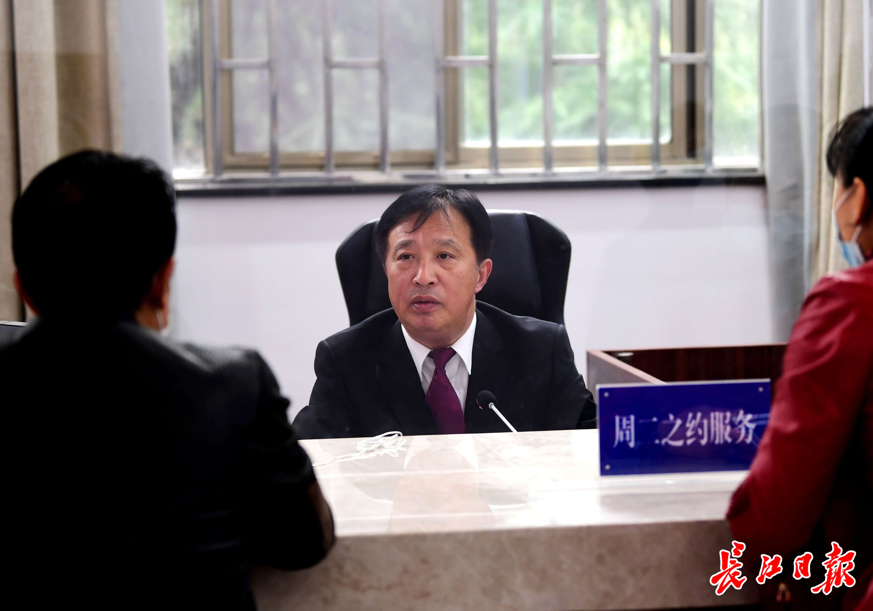 在“周二之约”工作室,汉阳区人民法院执行局副局长李冲在接待执行案件的当事企业。 记者史伟 摄