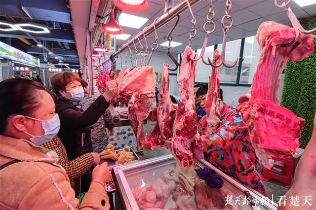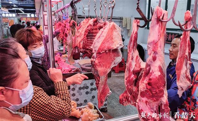 11月21日,江城气温骤降,在市场中,买羊肉的人明显增多,在洪山立信生鲜市场,几家买新鲜羊肉的店铺,一改前些时的冷清,变得热闹,好点的羊腿在上午很快就卖完了。