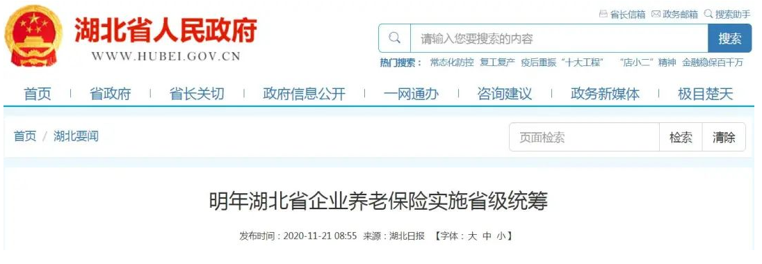 记者从省委宣传部新闻发布会上获悉,我省将从2021年1月1日起实施企业养老保险省级统筹,基金由省级统收、统支、统管,在全省范围内统筹调度使用。此次改革,有利于均衡各地负担,防范化解养老待遇支付风险。