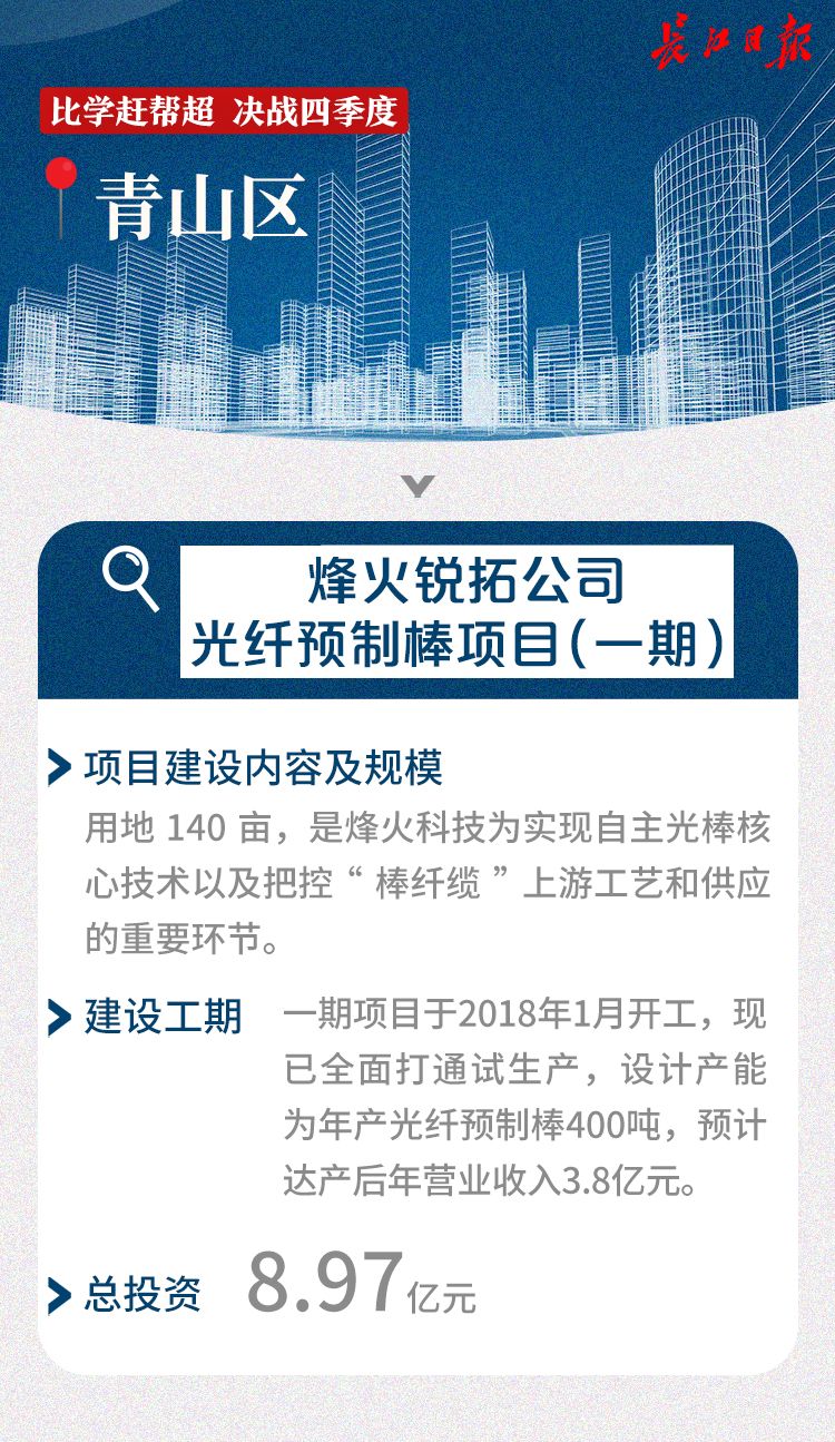武汉烽火锐拓有限公司是中国信科集团旗下上市公司烽火通信全资子公司,位于青山区(化工区)临江大道。公司一期项目于2018年1月开工,总投资8.97亿元,设计产能为年产光纤预制棒400吨,预计达产后年营业收入3.8亿元。具有较高的科技创新水平和经济效益。