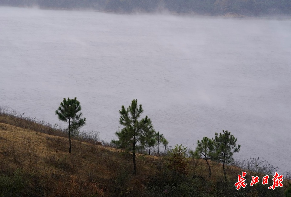 长江网11月24日讯 11月24日,连续几日的气温骤降,使武汉市黄陂区木兰湖和一些水库的湖面上出现雾漫美景,因为湖水的温度高于骤降的气温,湖水蒸发后碰到低温空气立刻凝固成水汽,构成了一道别样的初冬美景。据一位老乡说,昨天湖面的雾气更大。(记者彭年 摄影报道)