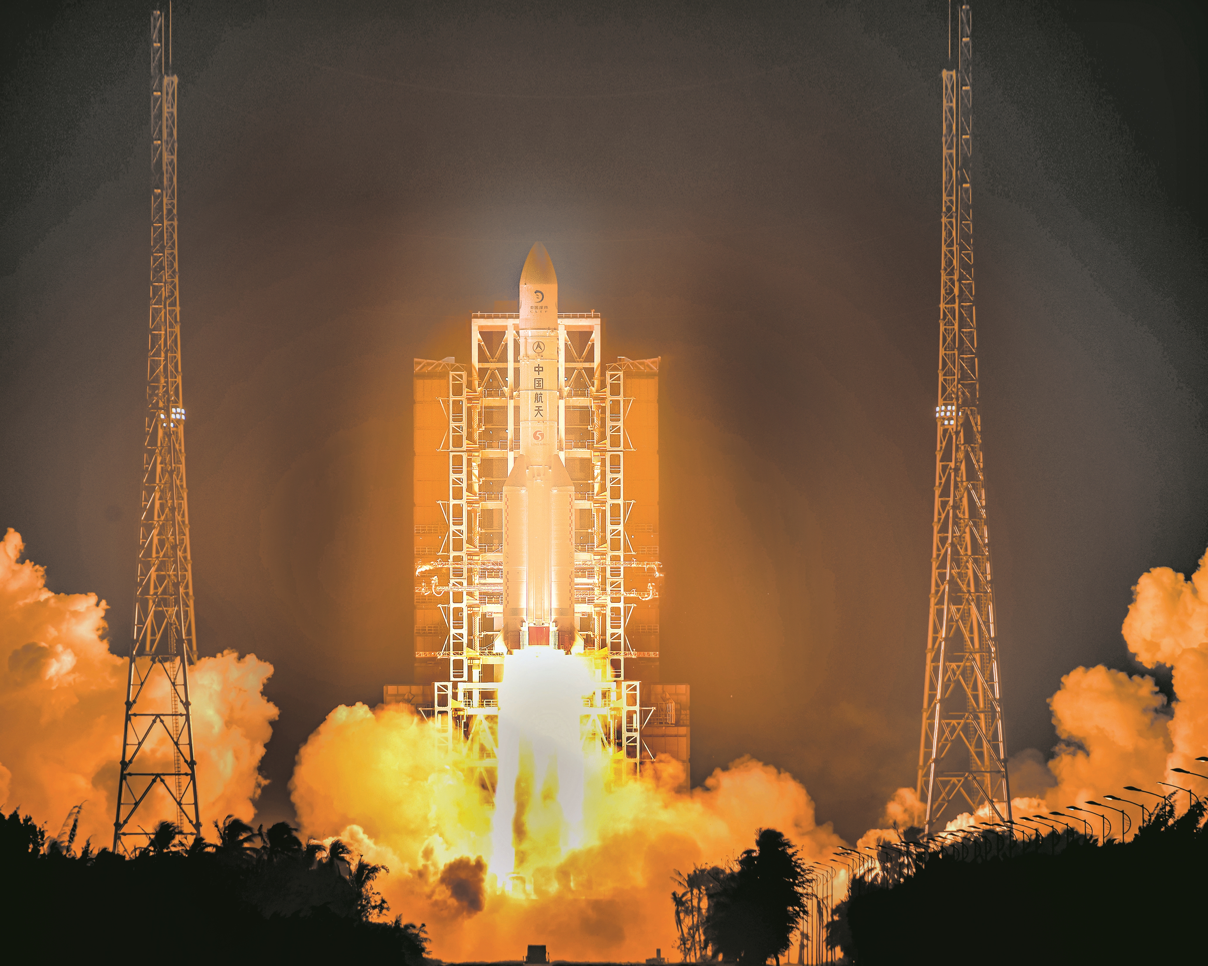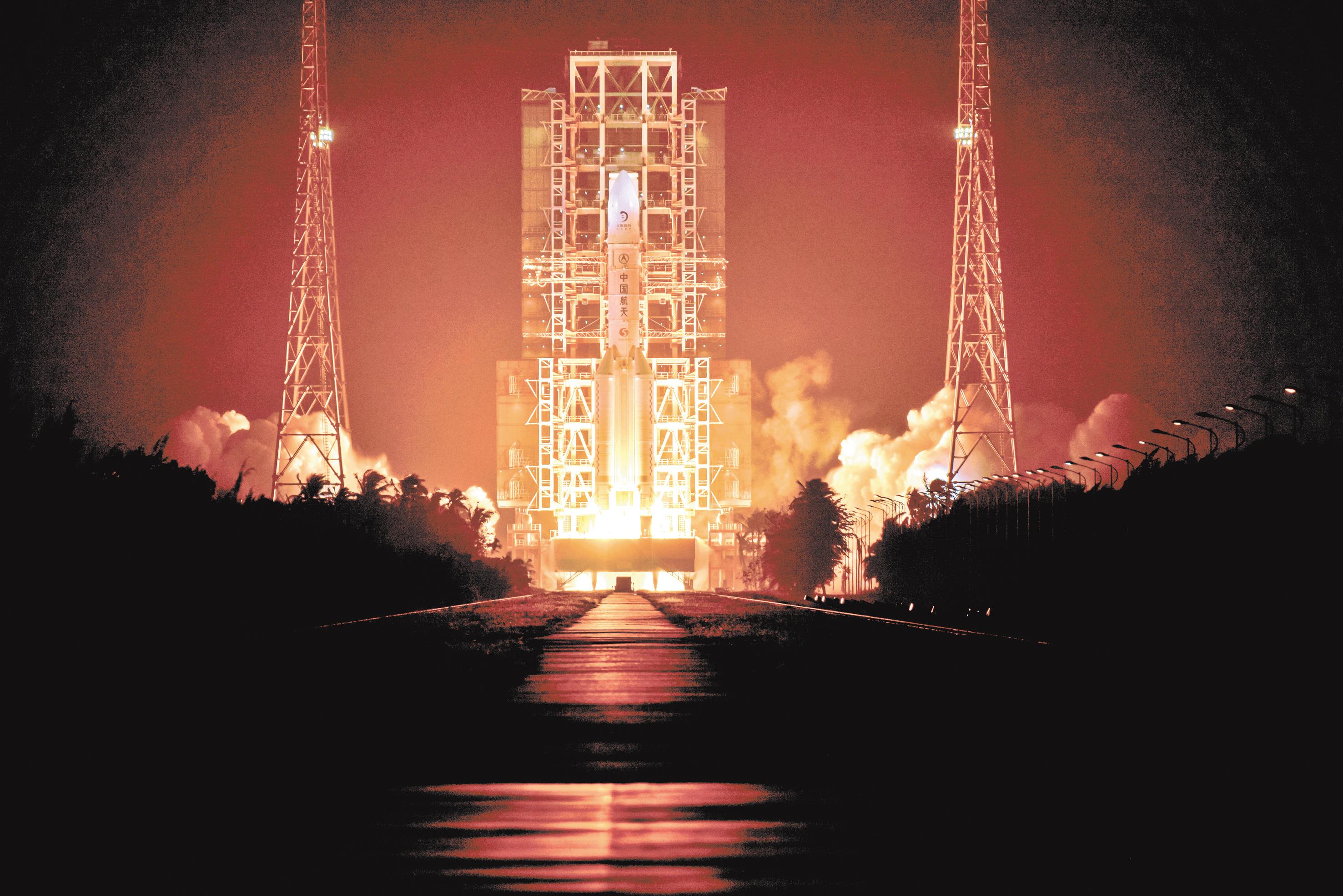 昨日4时30分,我国在中国文昌航天发射场,用长征五号遥五运载火箭成功发射探月工程嫦娥五号探测器,并顺利将探测器送入预定轨道,开启我国首次地外天体采样返回之旅。楚天都市报记者王永胜摄