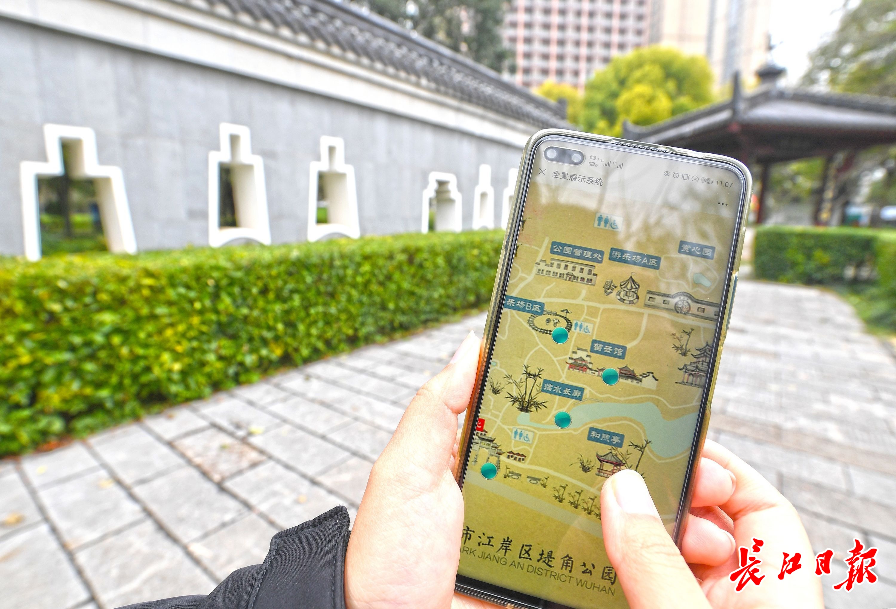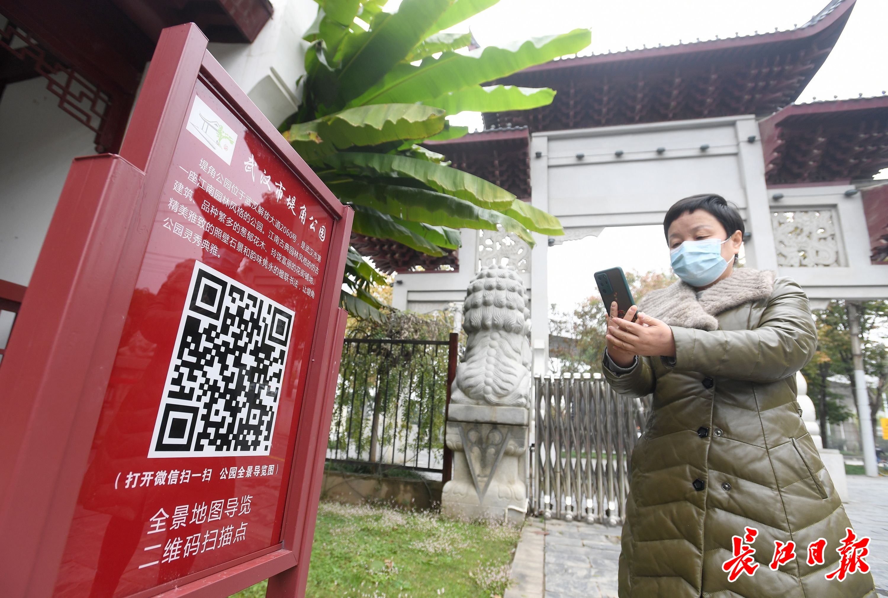长江网11月26日讯(记者周超 通讯员周德飞)26日,记者在江岸堤角公园看到,这个2004年建成的公园,因为有了数字化技术运用,正努力构建人与自然、城与自然和谐共生的现代化公园。通过公园大门处的自助导游机,游客可用双手控制全景地图的旋转和缩放,查看园区景点位置及风貌,方便规划最佳游览路线;用微信扫描二维码,可查看公园VR全景地图,即便不出门,在家躺着也能“逛”公园;在蓬岛和留云馆,通过智能化监测设备,可实时查看时间、PM2.5等信息;扫描二维码就可以聆听景点介绍、植物介绍及最佳观赏时间和位置……