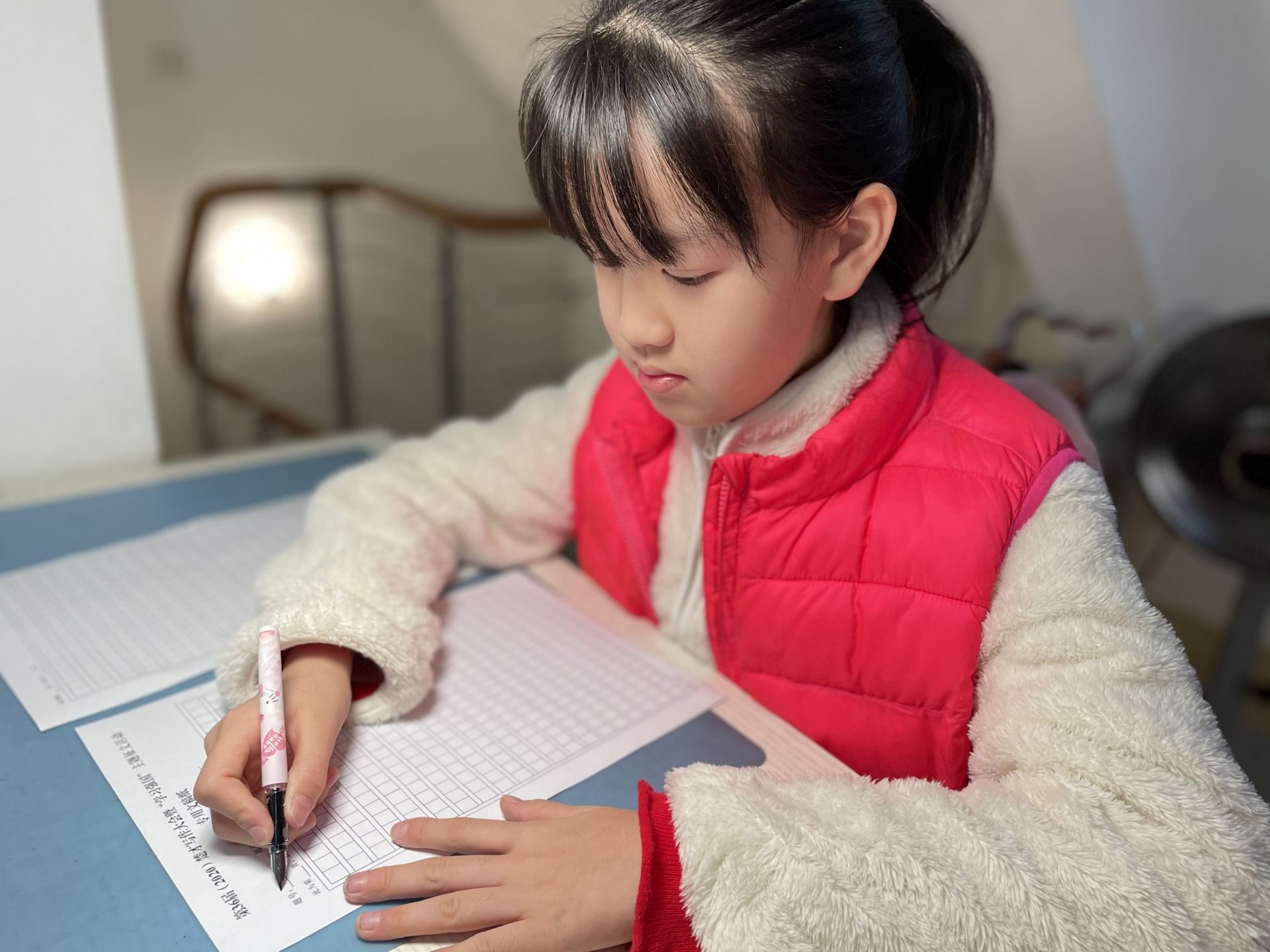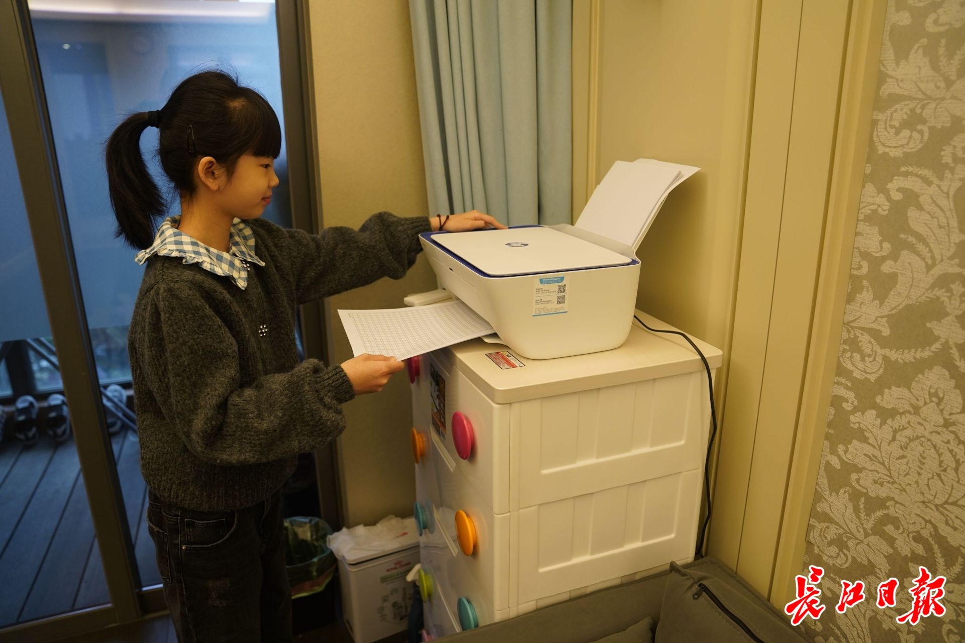 长春街小学五年级学生詹紫然提前打印稿纸。记者 彭年摄