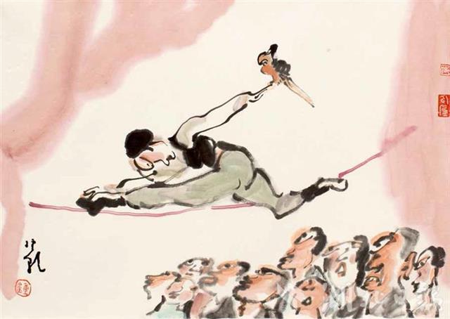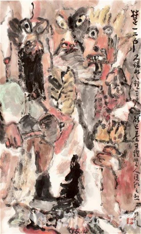 钟孺乾教授曾任中南民族大学美术学院院长,今年已近70岁,是三位参展者中最年长的艺术家。长期以来,他一直致力于水墨重彩画的探索,此次画展集中展示了他的30多幅精品力作。钟孺乾介绍,这些作品是近20年创作,题材跟杂技、魔术、柔术、驯兽等舞台艺术相关,也与社会现象、娱乐等相关。展览学术主持、合美术馆执行馆长鲁虹认为,钟孺乾教授大胆地将具有东方特点的写意画、民间绘画、壁画,与西方现代绘画的观念、技法相融合,并得到了学术界的广泛认可,其作品多次参加国内外重大学术展览。在此次参展作品中,他的少数作品还保留着以往的探索痕迹,但整体上已经发生了很大的变化。具体说来,就是在依然强调色彩对画面介入的同时,更重视书法用笔与传统媒介的审美特点,于是也使作品中的笔性、墨性、色性与水性特点得到了很好的发挥。