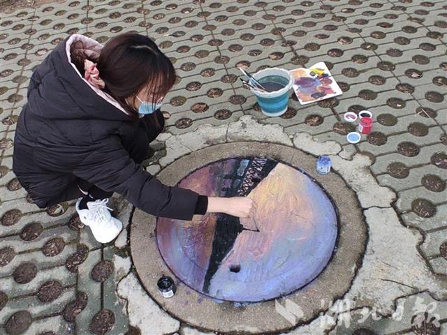 湖北日报讯(记者张歆、通讯员王斐婷、蒲亚杰)调色、沾色、上色……反复多次后,窨井盖就换上了“新装”。12月2日,走在武汉科技大学的校园,不少师生被五彩斑斓的窨井盖吸引。