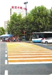 今年9月,黄白相间的彩色斑马线出现在中山大道利济路路口,行人和非机动车过马路有各自专门的区域。此后,这样的彩色斑马线出现在武汉三镇。