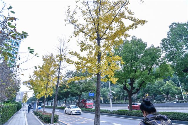见有些银杏边变色边落叶,有市民担心:换装晚点了,还能见到一树金黄吗?